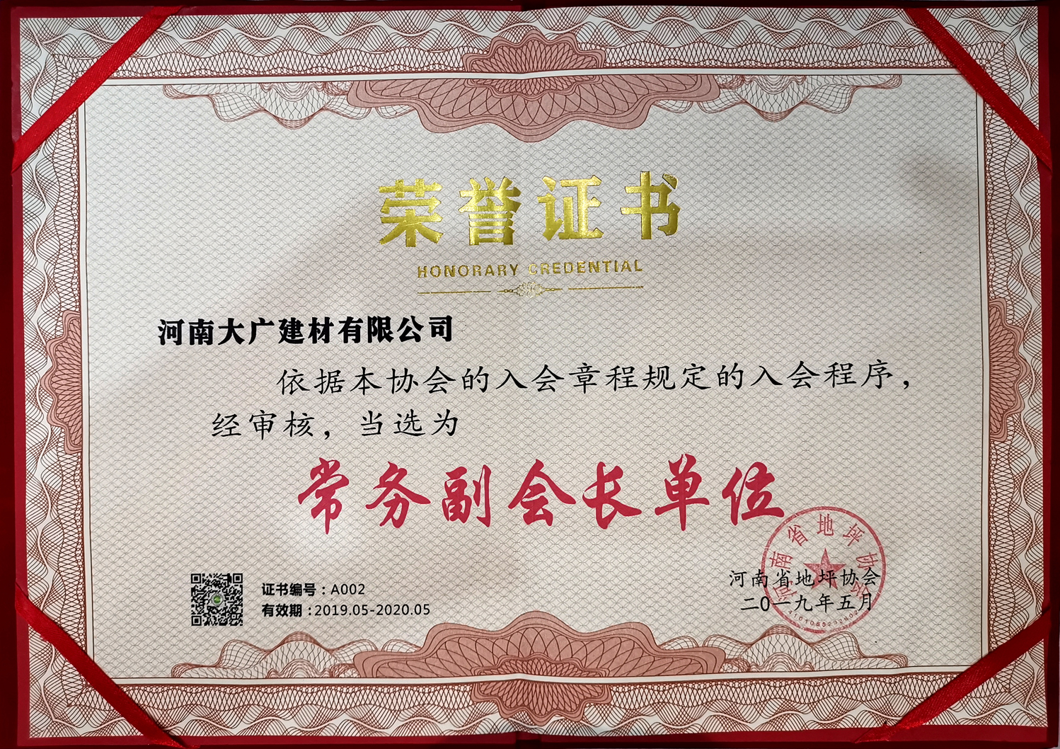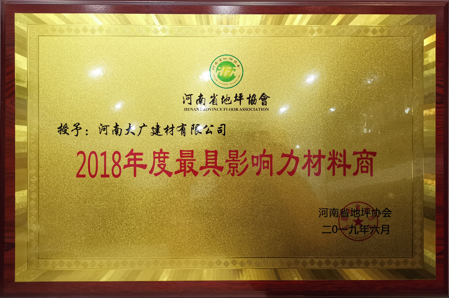 榮獲:河南省地坪協(xié)會(huì)*具影響力材料商 稱號(hào)